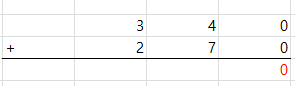 일의 자리를 먼저 계산 합니다. 0 + 0 = 0