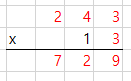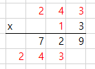 243 x 13 을 계산 한다고 하면 다음과 같이 표현을 할 수가 있습니다.