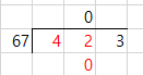 42를 67로 나눈 몫이 0 이므로 다시 423 을 어림잡아 몫을 계산해 봅니다.