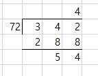 몫이 4이고 나머지는 342 - 288 = 54 이므로