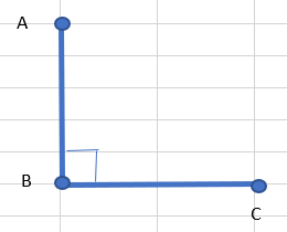 직각은 다음과 같이 직각 ABC를 나타낼때는 꼭짓점 B에 직각 표시를 합니다.