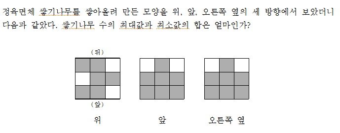 최소값 : 맨아래 6개 중간 4개 맨 위 1개 = 11개