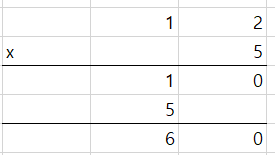 먼저 10의 자리 1 을 5번 곱하기 하면 5가 되고 이 의미는 50의 의미가 됩니다.