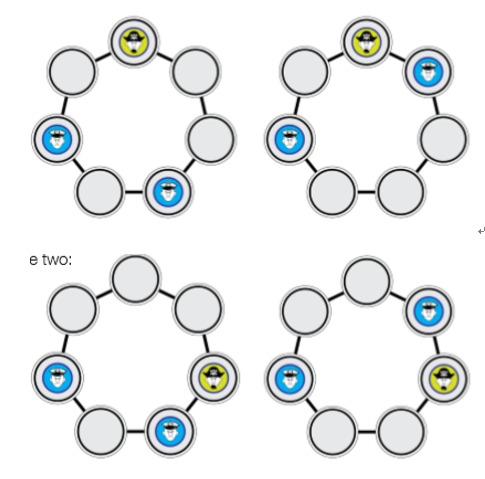 경찰관은 해적 위치로 이동할 수 없으므로 경찰관은 다른 위치로 이동해야 하는데 이동할 때 마다 해적은 두칸 위치의 공백을 볼 수가 있습니다. 따라서 영원히 해적을 잡을 수 없습니다.