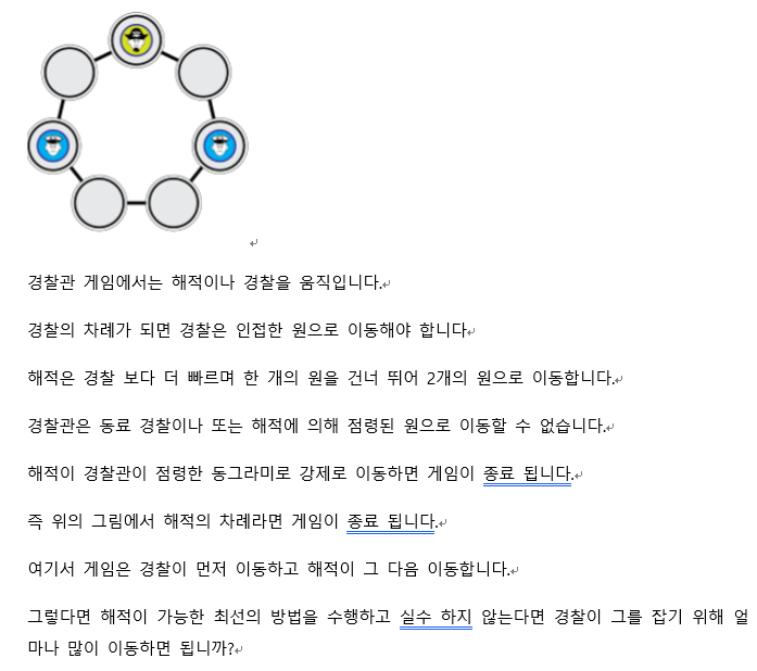 위의 그림과 같이 경찰관을 위아래 이동하는 경우 해적은 경찰관의 위치를 피해 갈 수 있습니다.