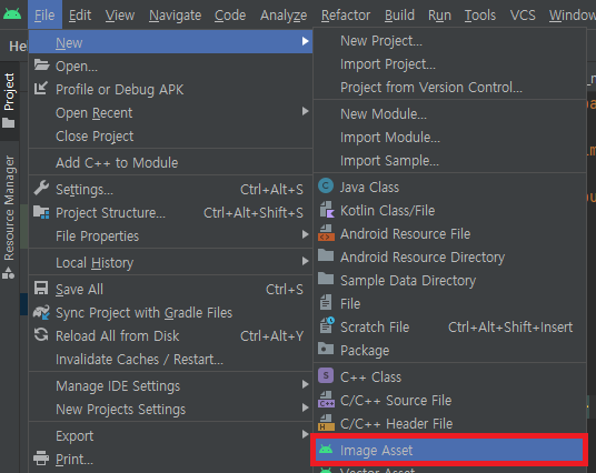 1. New -> Image Asset 선택