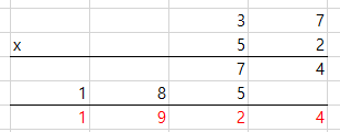 먼저 빨간색 부분 3 X 4의 값을 계산하여 일의 자리에 맞춰 적어 놓습니다.