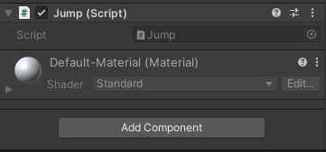 3. Jump 스크립트를 큐브에 연결하자.