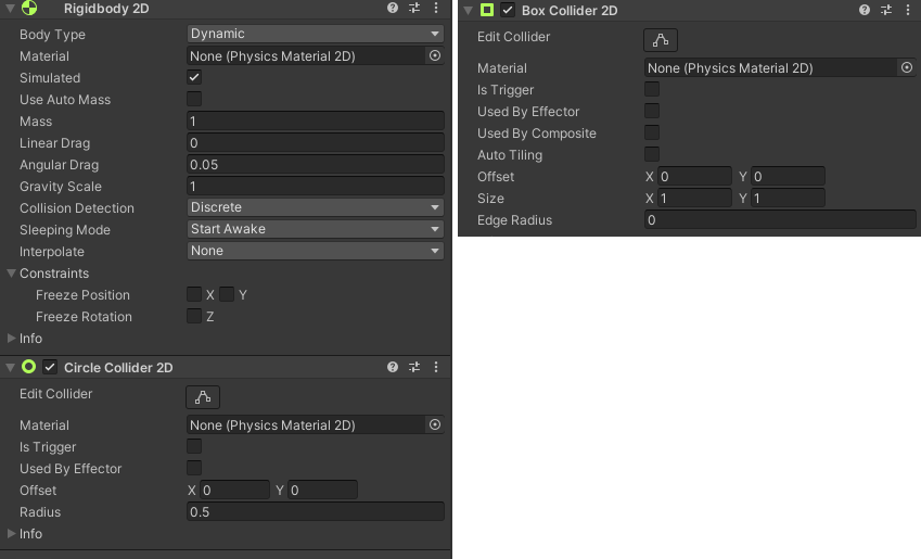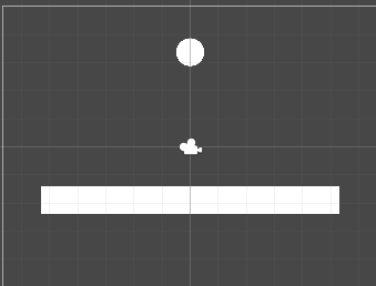 Circle/Square 두개를 생성하여 배치 후 Circle에는 중력과 충돌 설정, Square에는 충돌만 설정하자.