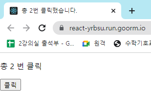 이렇게 했을 때 위와 같은 화면에서 클릭 버튼을 클릭하게 되면 count 는 증가 하지만 state 가 변경 되지 않아 재랜더링 되지 않는다.