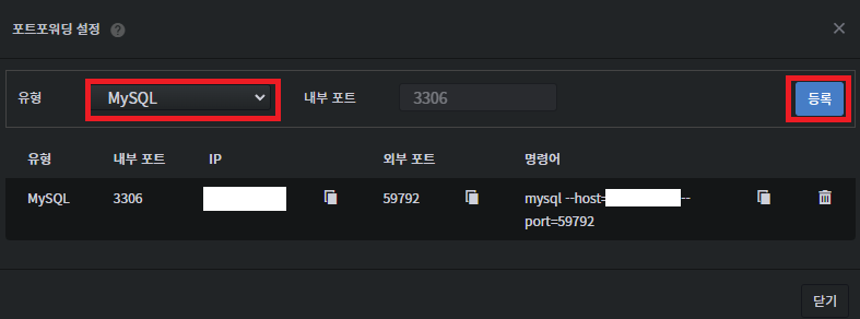 외부에서 telnet 외부아이피 외부포트로 접속테스트