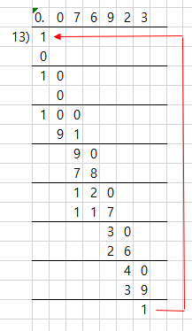 그렇다면 1/13의 순환마디는 무엇일까?