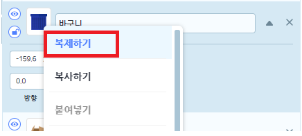 4. 오브젝트 목록에서 바구니를 선택해서 복제하기를 클릭하여 바구니 하나를 더 만듭니다.