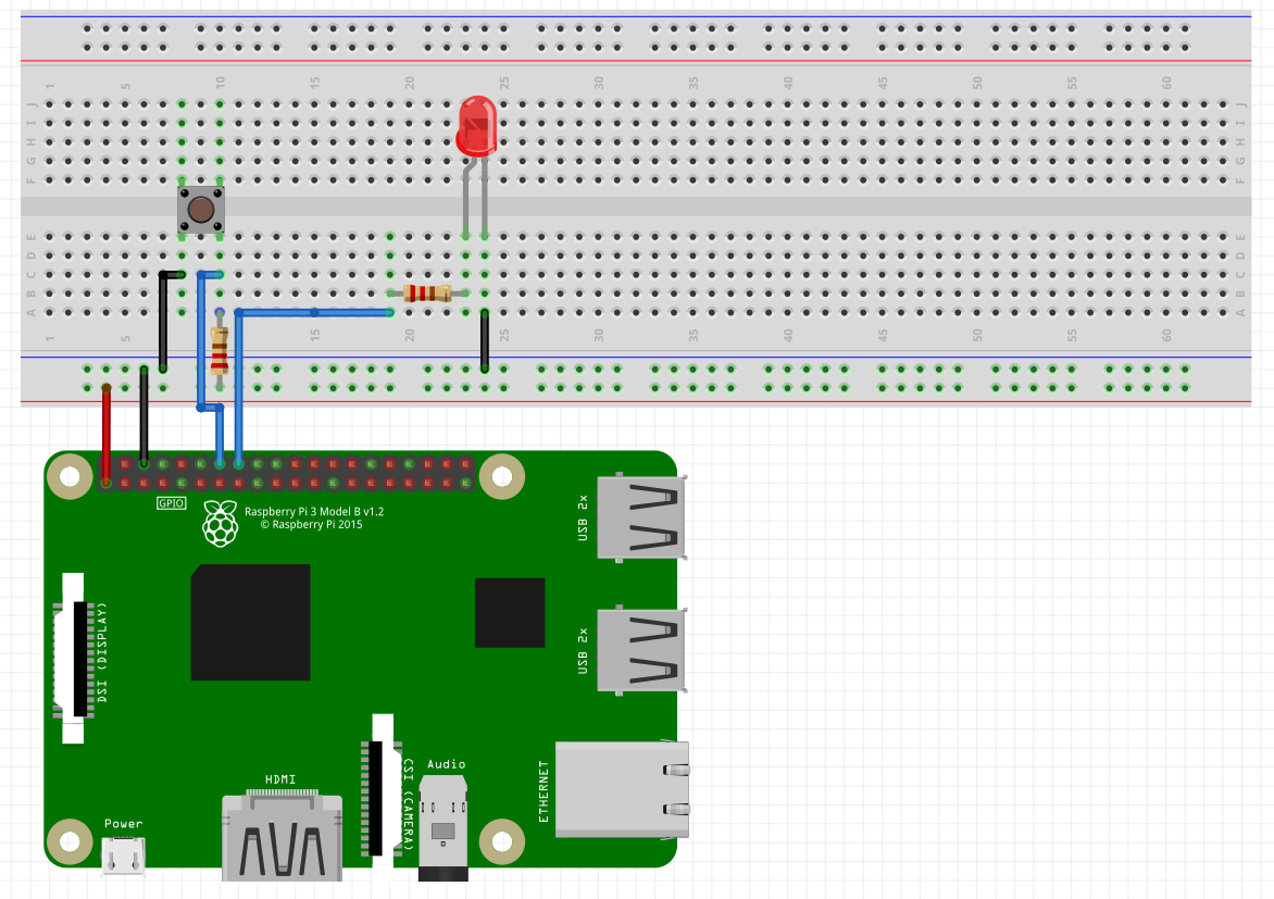 3.3V를 10K옴 저항 값을 통해 버튼에 연결하고 그 값을 BCM18에 연결 다른 쪽은 GND에 연결함