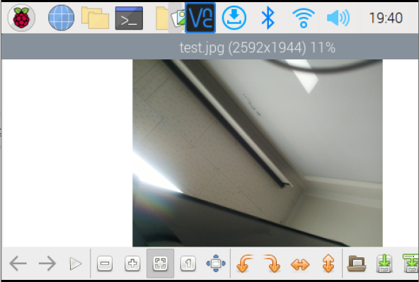 VNC에 접속하여 해당 폴더에 가면 다음과 같이 test.jpg가 생성되어 있다. 더블클릭하여 확인하면 사진이 찍혀 있는 것을 확인할 수 있다.