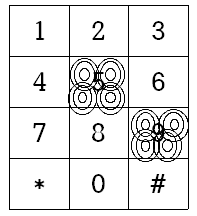 길동이는 비밀번호를 찾기 위해 금고의 보안장치에 특수한 물질을 묻혔더니 그림과 같은 지문자국이 나타났습니다.