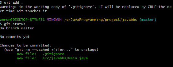 git status 로 확인하면 초록색으로 변경 된 것을 확인 할 수 있다.