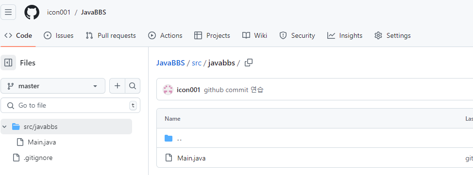 - 원격 저장소의 commit 클릭