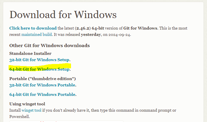1. https://git-scm.com/downloads/win 에 접속 하여 파일을 다운로드 받는다