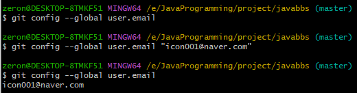 6. 다음으로 git에게 내가 누군지를 알려 주는 작업을 수행한다.(commit을 수행하기 전 항상 작업)