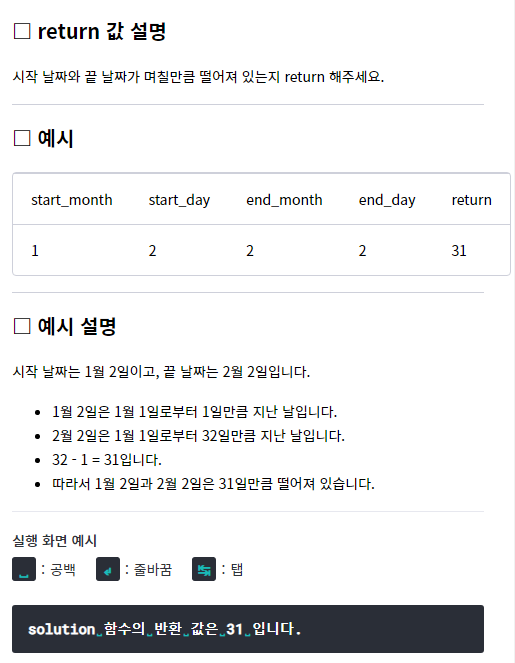 int solution(int start_month, int start_day, int end_month, int end_day) {