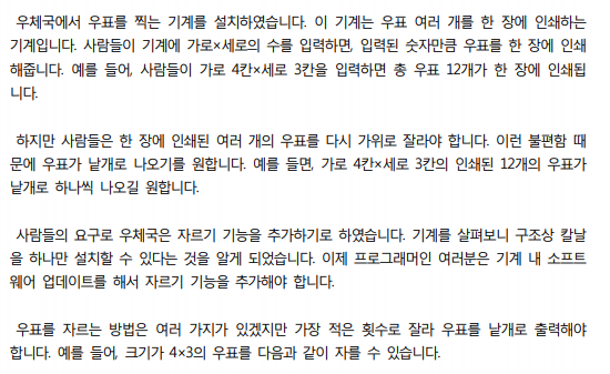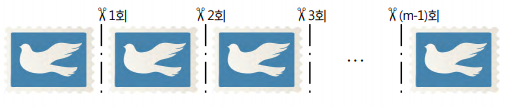 잘라진 m×1크기의 우표를 1×1크기의 우표로 만들려면 자르기가 몇 번 필요할까요?