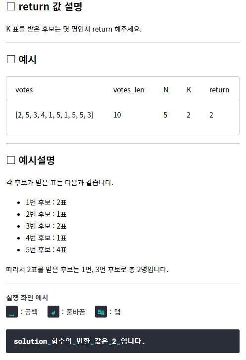 int ret = solution(votes, N, K);