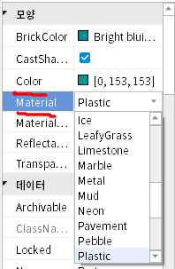 속성과 Material 을 적당하게 선택해 주자.